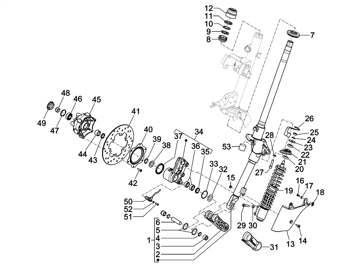 Hub back plate - brake caliper bracket front -PIAGGIO- Vespa GTS 125 (ZAPMA3100, ZAPMA3200, ZAPMA3700), Vespa GTS 150 (ZAPMA3200, ZAPMA3100), Vespa GTS 300 (ZAPMA3300), Vespa GTS HPE 300 (ZAPMA3600, ZAPMD310), Vespa GTS Super 125 (ZAPMA3100, ZAPMA3200, ZA