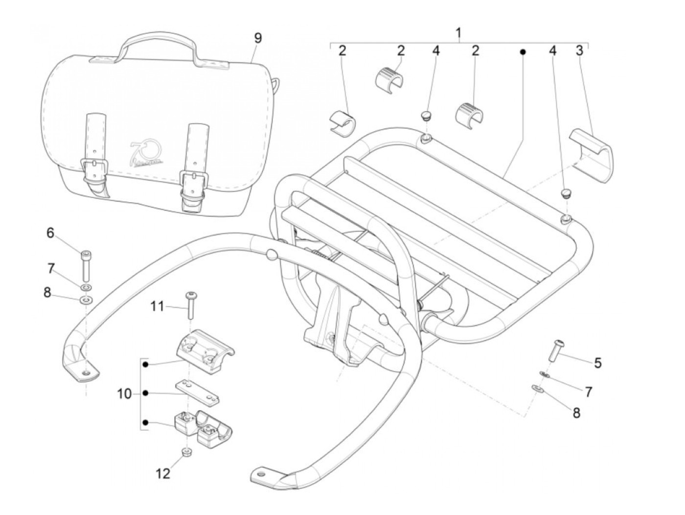 Clip di fissaggio per portapacchi -PIAGGIO- Vespa GT 250 (ZAPM45102), Vespa GTS 125 (ZAPM31300, ZAPMA3100, ZAPMA3200, ZAPMA3700, ZAPMD3200, ZAPMD3201), Vespa GTS 150 (ZAPMA3200, ZAPMA3100), Vespa GTS 250 (ZAPM45100, ZAPM45101), Vespa GTS 300 (ZAPM45200, Z