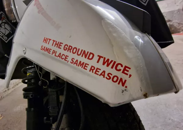 Gewöhnt, in Kolumbien mit den normalen Bremsen eines normalen Rollers zu fahren (d.h. ohne echten Bremseffekt), habe ich wertvolle und schmerzhafte Lektionen gelernt, als ich die Scheibenbremse einweihte. ...Im Regen. Zweimal!..