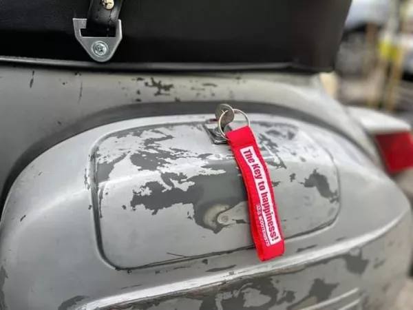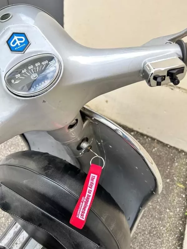 Der Weg zum Glück ist auf einem Roller, deshalb müssen die Schlüssel zu unseren Vespas und Lambrettas entsprechend mit einem SC Schlüsselanhänger markiert sein.