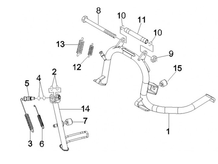Béquille centrale -PIAGGIO- Vespa GT L 125 (ZAPM31100, ZAPM31101), Vespa GT L 200 (ZAPM31200), Vespa GTS 125 (ZAPM31300), Vespa GTV 125 (ZAPM31301)