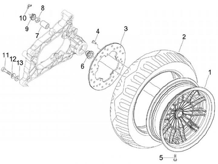 Mur roda belakang -PIAGGIO- Vespa PX (dari tahun 1984), T5 125cc, PK XL, Cosa, Piaggio otomatis, Gilera otomatis