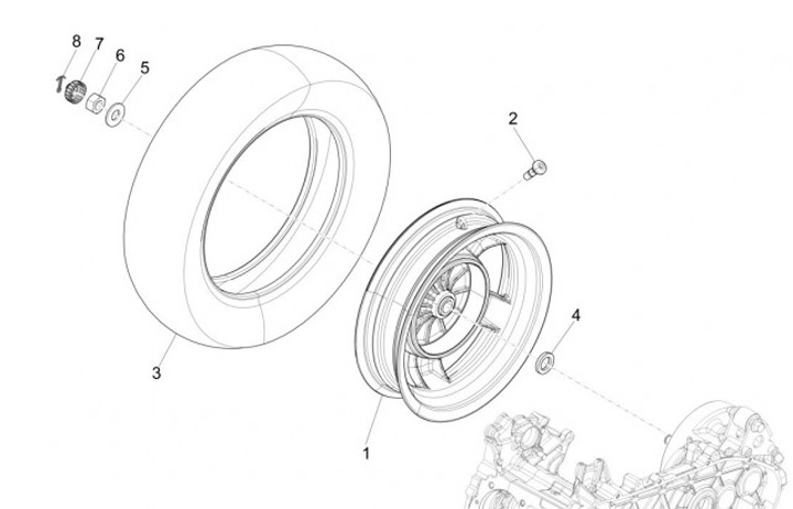 Bakhjulsmutter -PIAGGIO- Vespa PX (från 1984), T5 125cc, PK XL, Cosa, Piaggio automatisk, Gilera automatisk