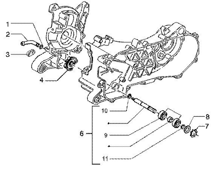 Bagian sambungan selang radiator di mesin -PIAGGIO- Piaggio 50 ccm LC (HiPer 2)