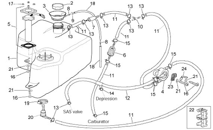 Pompa bensin -PIAGGIO- Vespa GT L 125 (ZAPM31100, ZAPM31101), Vespa GT L 200 (ZAPM31200), Vespa GTV 125 (ZAPM31301), Gilera DNA 125 (ZAPM26000), Gilera DNA 180 (ZAPM26000), Gilera DNA 50 (ZAPC27000), Gilera Runner 125 (ZAPM24200, ZAPM24100, ZAPM46100, ZAP
