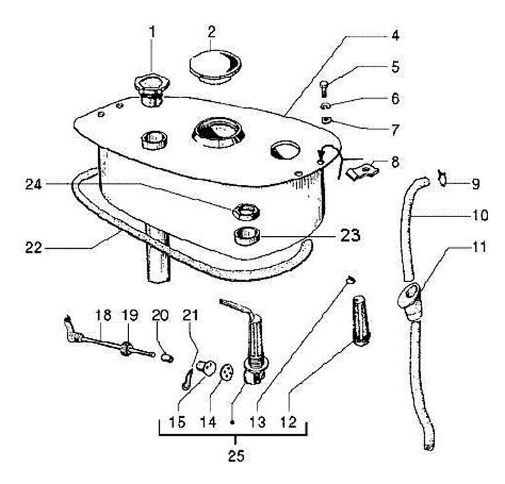 Keran/tangki bensin mur -VESPA- PX, Sprint150 (VLB1T), Rally180 (VSD1T), Rally200 (VSE1T), GT125 (VNL2T), GTR125 (VNL2T), GL150 (VLA1T), Super, VNB, VNA, VBA, VBB, V50, V90, SS50, SS90, PV125, ET3, PK XL1