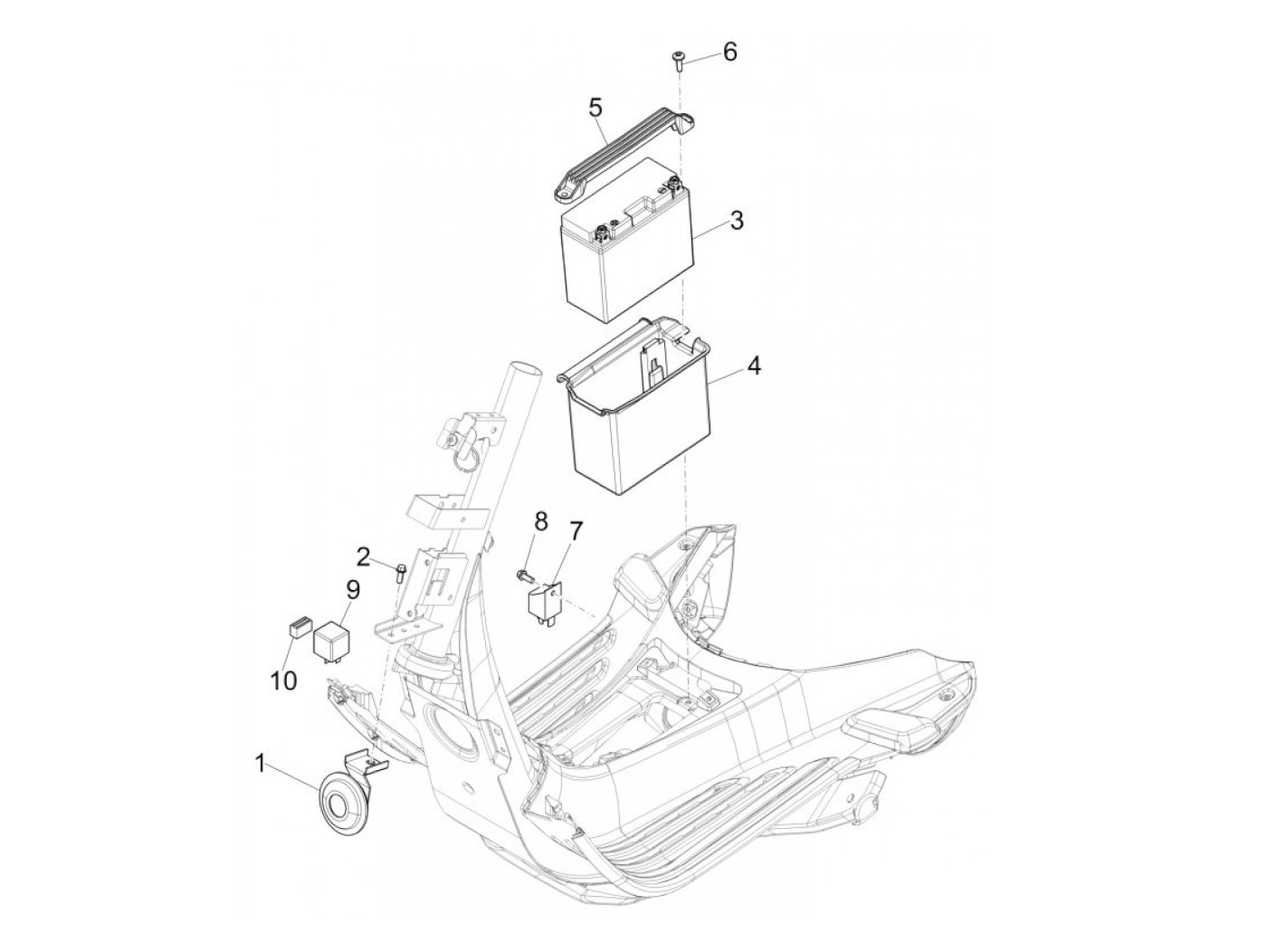 Tempat baterai -PIAGGIO- Vespa Primavera 125 (ZAPM81100, ZAPM81101, ZAPMA1100, ZAPMA1101, ZAPMD1100), Vespa Primavera 150 (ZAPM81200, ZAPMA1200, ZAPM81201, ZAPMA1201, ZAPMD120), Vespa Primavera 50 (ZAPC53200, ZAPC53100, ZAPC53300, ZAPC53302, ZAPCA0100,