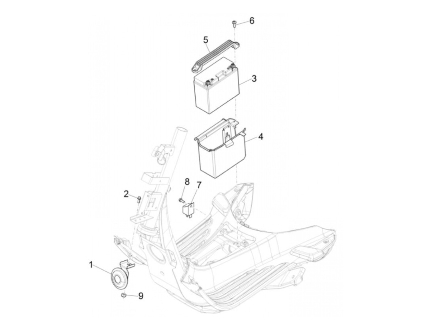 Tempat baterai -PIAGGIO- Vespa Primavera 125 (ZAPMA1100, ZAPMA1101, ZAPMD1100), Vespa Primavera 150 (ZAPMD120), Vespa Primavera 50 (ZAPCA0100, ZAPCA0200, ZAPCA0102, ZAPCA0202, ZAPCD020, ZAPCD010), Vespa Sprint 125 (ZAPMD1101), Vespa Sprint 150 (ZAPMA1400,