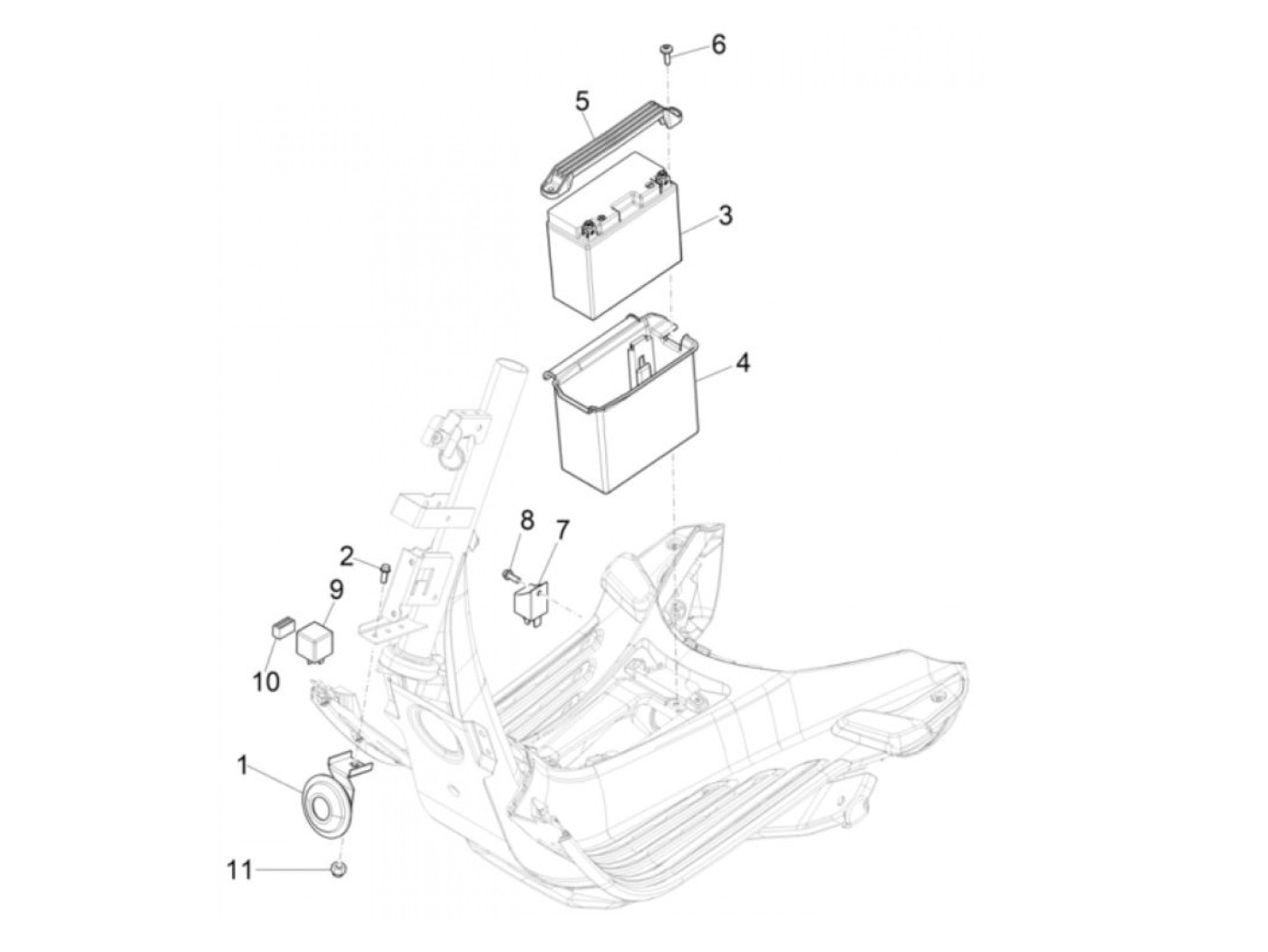 Tempat baterai -PIAGGIO- Vespa Primavera 125 (ZAPM81100, ZAPM81101, ZAPMA1100, ZAPMA1101, ZAPMD1100), Vespa Primavera 150 (ZAPM81200, ZAPMA1200, ZAPM81201, ZAPMA1201, ZAPMD120), Vespa Primavera 50 (ZAPC53200, ZAPC53100, ZAPC53300, ZAPC53302, ZAPCA0100,