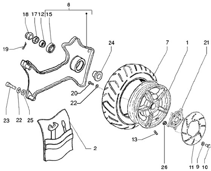 Mur roda belakang -PIAGGIO- Vespa PX (dari tahun 1984), T5 125cc, PK XL, Cosa, Piaggio otomatis, Gilera otomatis