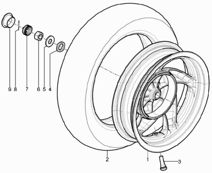 Mur roda belakang -PIAGGIO- Vespa PX (dari tahun 1984), T5 125cc, PK XL, Cosa, Piaggio otomatis, Gilera otomatis