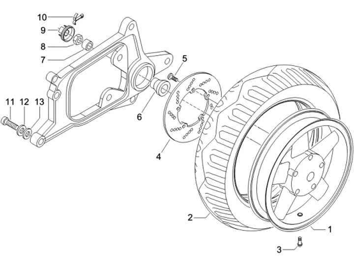 Mur roda belakang -PIAGGIO- Vespa PX (dari tahun 1984), T5 125cc, PK XL, Cosa, Piaggio otomatis, Gilera otomatis