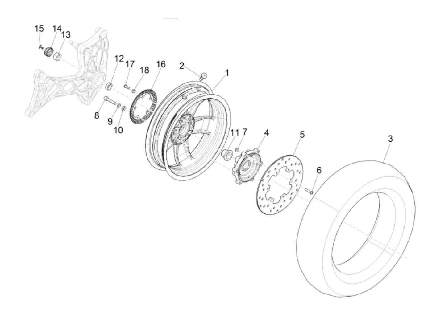 Spacer poros roda belakang kecil -PIAGGIO- Vespa GTS 125 (ZAPMA3100, ZAPMA3200, ZAPMA3700), Vespa GTS 150 (ZAPMA3200, ZAPMA3100), Vespa GTS 300 (ZAPMA3300), Vespa GTS HPE 300 (ZAPMA3600, ZAPMD310), Vespa GTS Super 125 (ZAPMA3100, ZAPMA3200, ZAPMA3700),