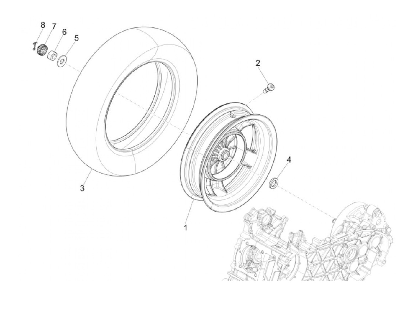 Mur roda belakang -PIAGGIO- Vespa PX (dari tahun 1984), T5 125cc, PK XL, Cosa, Piaggio otomatis, Gilera otomatis