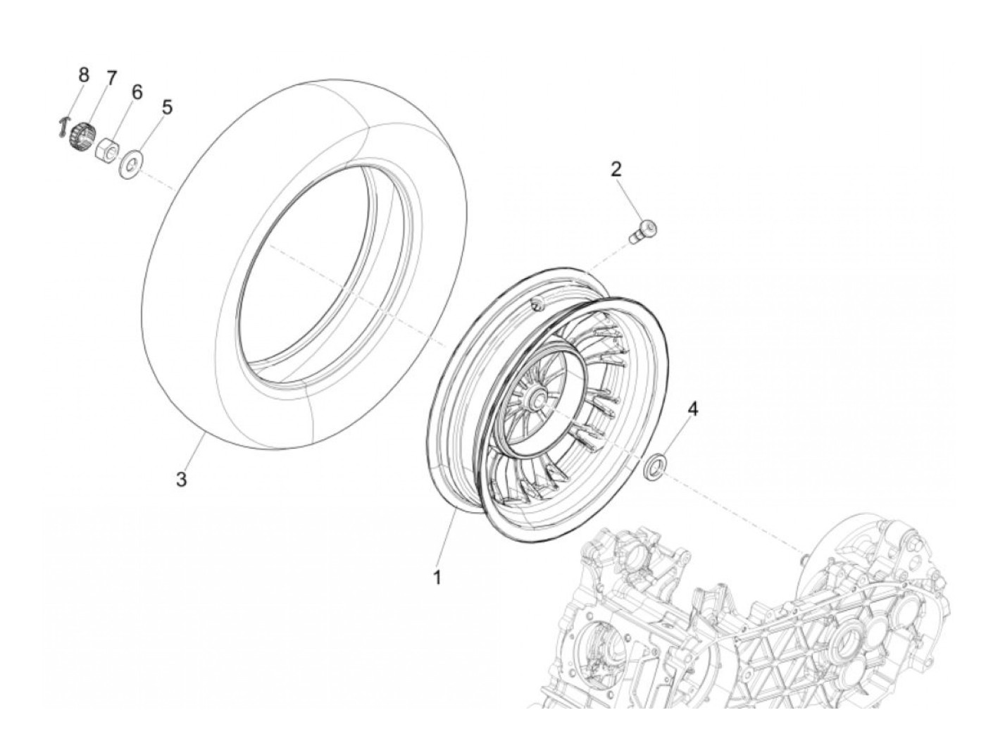 Mur roda belakang -PIAGGIO- Vespa Primavera 125 (ZAPMA1100, ZAPMA1101, ZAPMD1100), Vespa Primavera 150 (ZAPMA1201, ZAPMA1200, ZAPMD120), Vespa Primavera 50 (ZAPCA0102, ZAPCA0100, ZAPCD020, ZAPCD010), Vespa Sprint 125 (ZAPMA1300, ZAPMA1301, ZAPMD1101), Ves