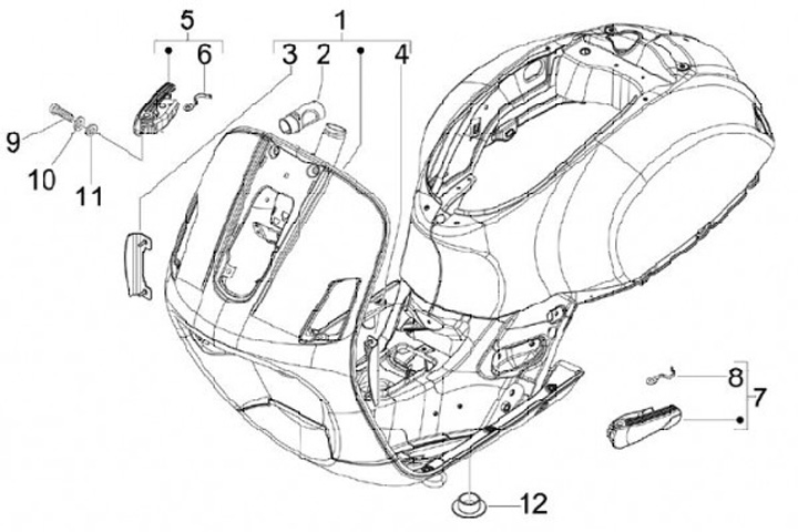 Braket untuk kompartemen bagasi, radiator kanan -PIAGGIO- Vespa GT 250 (ZAPM45102), Vespa GTS 125 (ZAPM31300, ZAPMA3100, ZAPMA3200, ZAPMA3700), Vespa GTS 150 (ZAPMA3200, ZAPMA3100), Vespa GTS 250 (ZAPM45100, ZAPM45101), Vespa GTS 300 (ZAPM45200, ZAPM45202