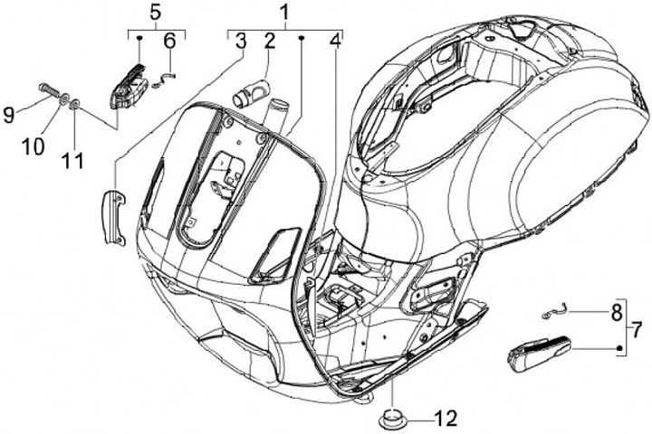 Braket untuk kompartemen bagasi, radiator kanan -PIAGGIO- Vespa GT 250 (ZAPM45102), Vespa GTS 125 (ZAPM31300, ZAPMA3100, ZAPMA3200, ZAPMA3700), Vespa GTS 150 (ZAPMA3200, ZAPMA3100), Vespa GTS 250 (ZAPM45100, ZAPM45101), Vespa GTS 300 (ZAPM45200, ZAPM45202