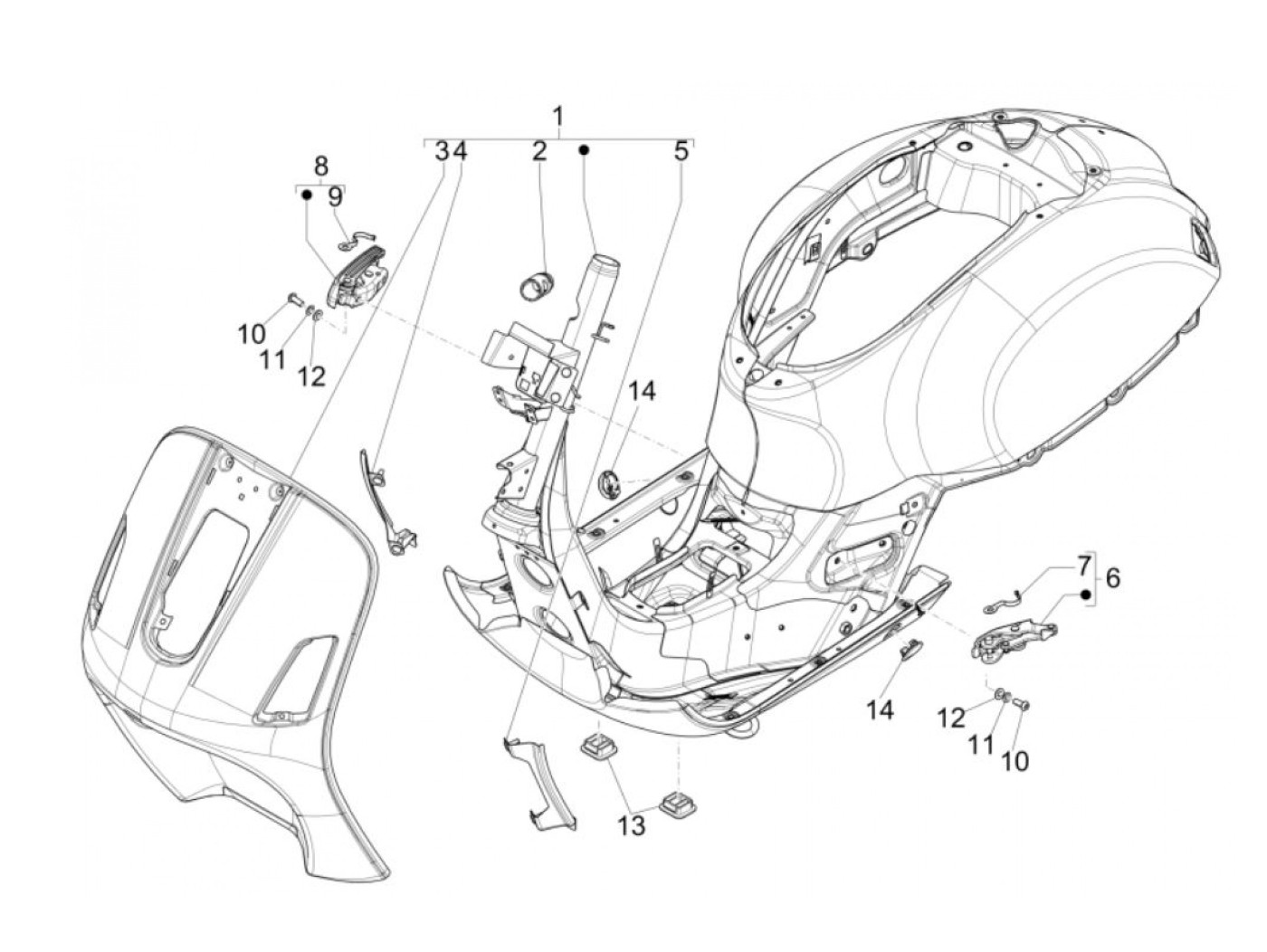 Braket untuk kompartemen bagasi, radiator kiri -PIAGGIO- Vespa GT 250 (ZAPM45102), Vespa GTS 125 (ZAPM31300, ZAPMA3100, ZAPMA3200, ZAPMA3700), Vespa GTS 150 (ZAPMA3200, ZAPMA3100), Vespa GTS 250 (ZAPM45100, ZAPM45101), Vespa GTS 300 (ZAPM45200, ZAPM45202,