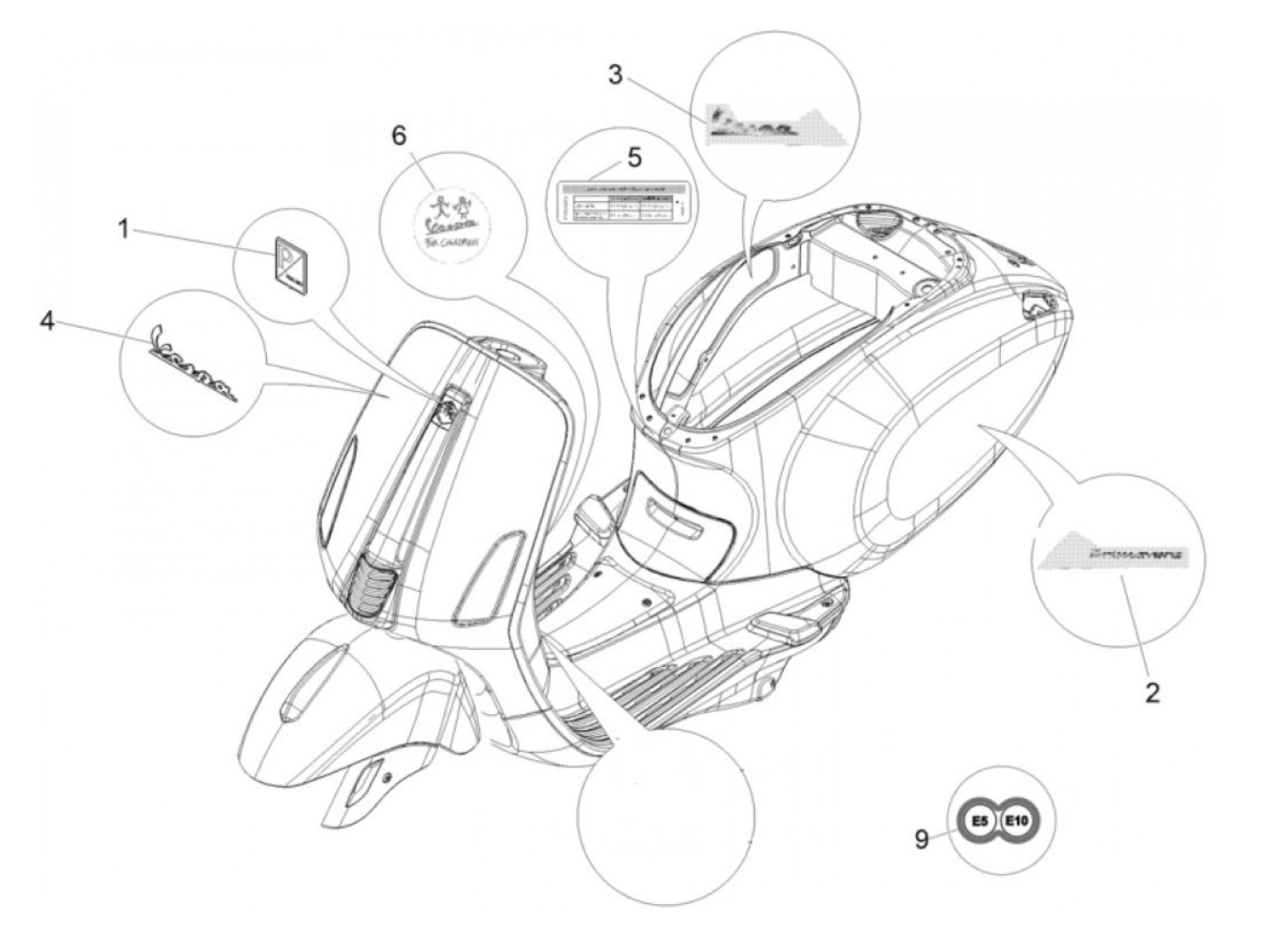 Tulisan sampul samping -PIAGGIO- Vespa - Vespa Primavera 125 (ZAPM81100, ZAPM81101, ZAPMA1100, RP8M82500, RP8M82821, RP8M82100, RP8M82310, ZAPMA1101, ZAPMD1100), Vespa Primavera 150 (ZAPM81200, ZAPMA1200, ZAPM81201, ZAPMA1201, ZAPMD120), Vespa Primavera 5