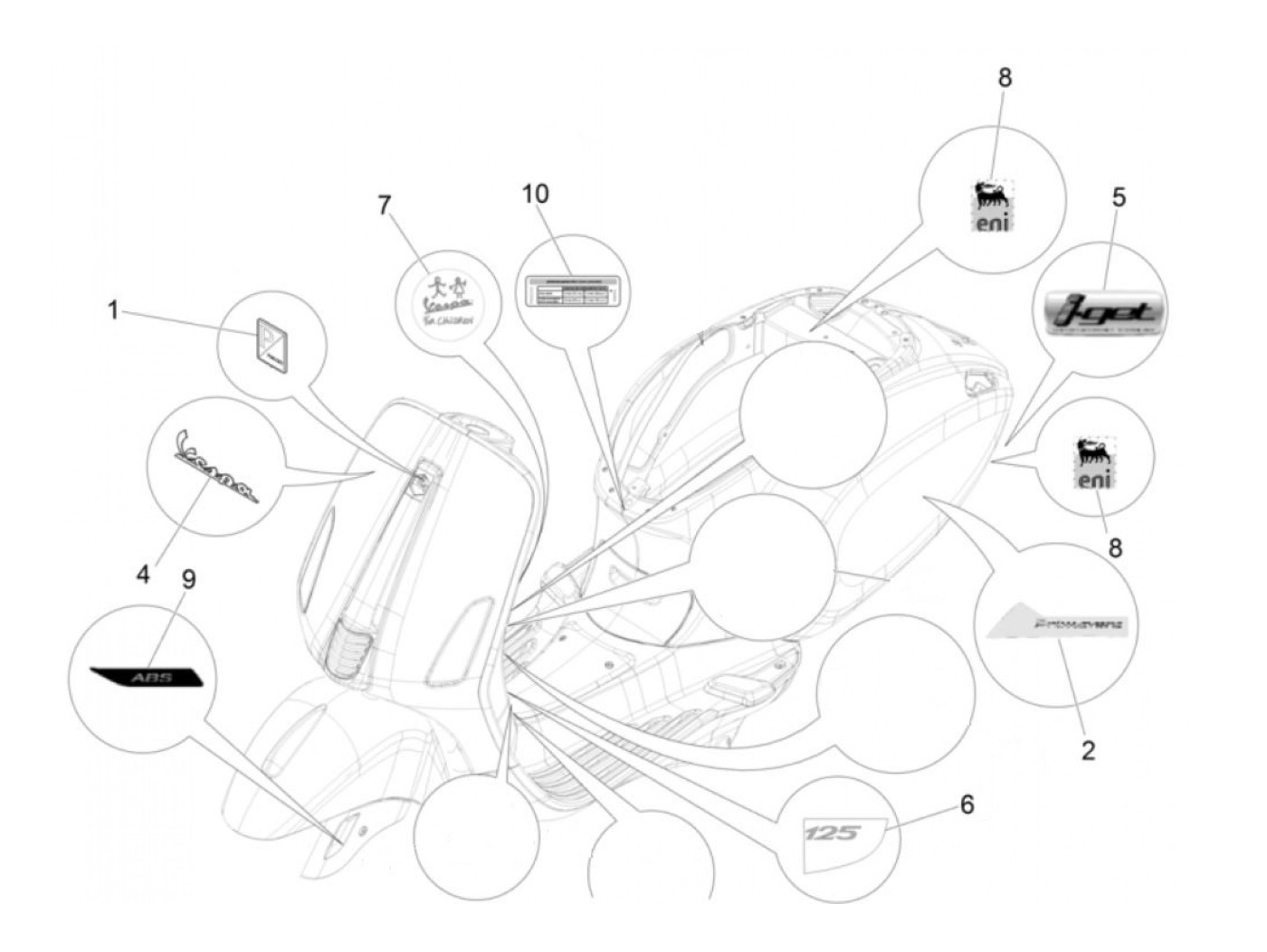 Huruf kompartemen bagasi -PIAGGIO- 125 - Vespa Primavera 125 (ZAPMA1100, ZAPMA1101, ZAPMD1100), Vespa Sprint 125 (ZAPMA1300, ZAPMA1301, ZAPMD1101)