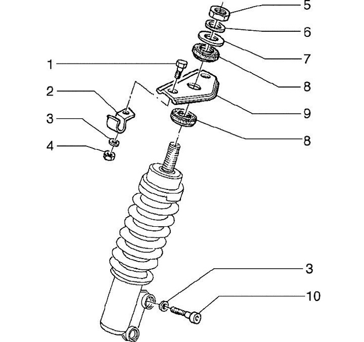 Garpu dudukan peredam kejut / bagian atas peredam kejut -PIAGGIO- Vespa GT 250 (ZAPM45102), Vespa GT L 125 (ZAPM31100, ZAPM31101), Vespa GT L 200 (ZAPM31200), Vespa GTS 125 (ZAPM31300), Vespa GTS 250 (ZAPM45100, ZAPM45101), Vespa GTS 300 (ZAPM45200), Vesp