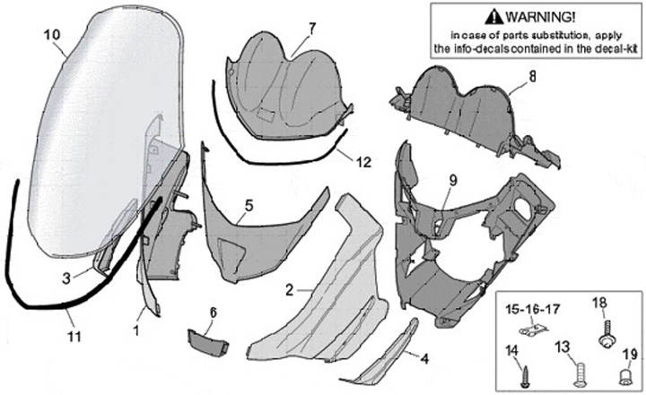 Semak berulir untuk kaca depan kokpit -PIAGGIO- Gilera DNA, Runner (dari tahun 2006), Piaggio NRG Extreme, NRG MC3, NRG Power