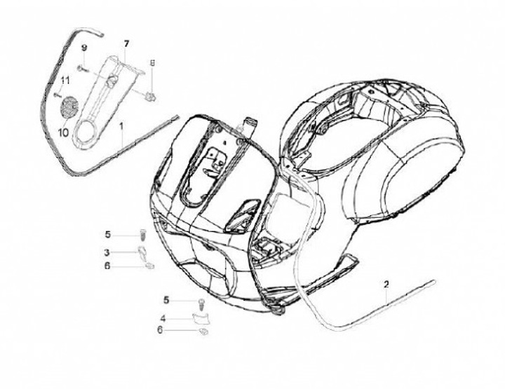 Cascade -PIAGGIO- Vespa LX (ZAPC38, ZAPM44) - satu bagian, tanpa kisi-kisi, tanpa lambang