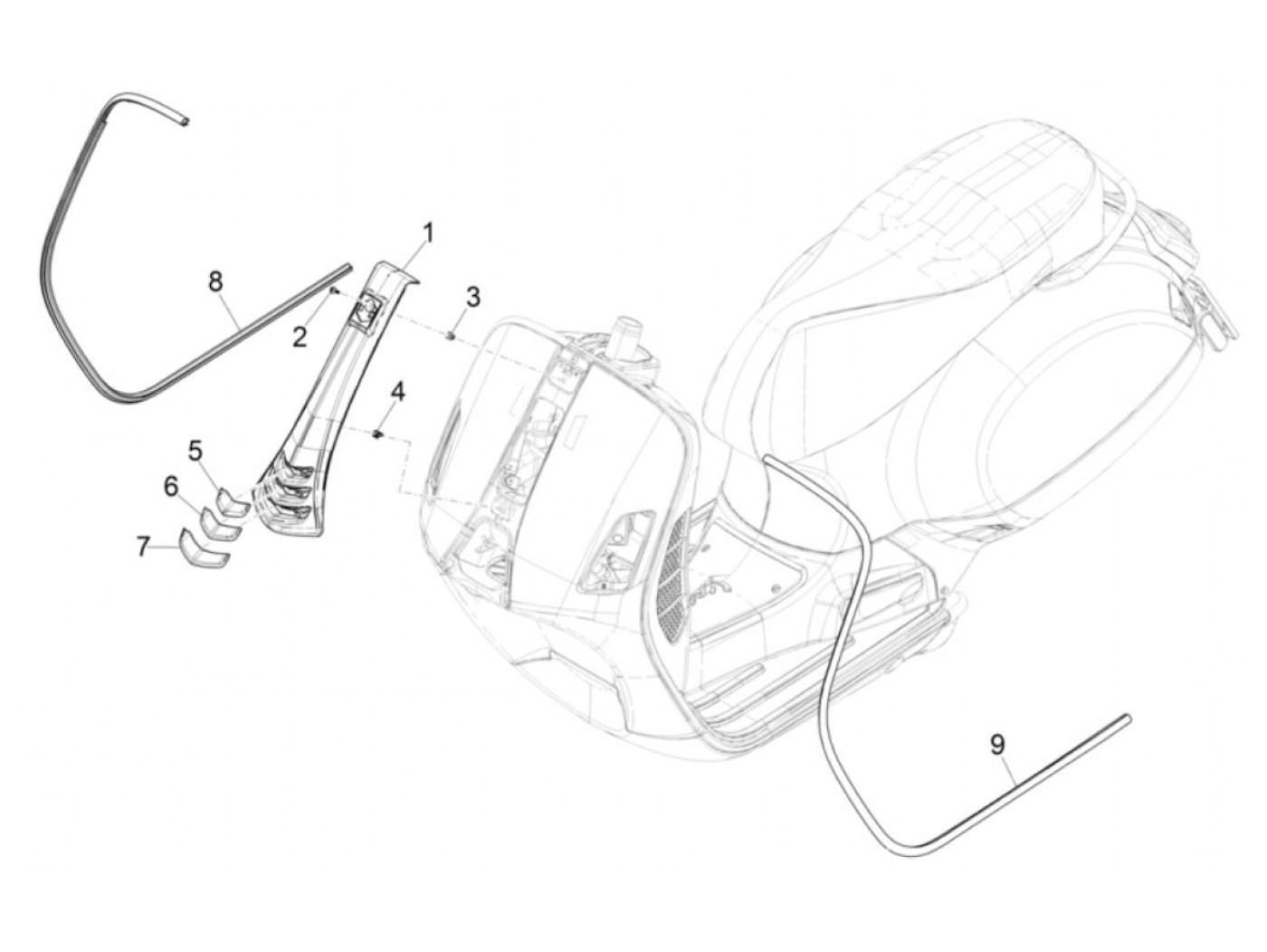 Sisipan kaskade (atas) -PIAGGIO- Vespa GTS125/300 (2019-2022), GTS Super (iGet/HPE), GTS Supersport (iGet/HPE), GTS Touring (iGet/HPE), GTS SuperTech (iGet/HPE), GTS Yacht Club, GTS SuperNotte - Chrome