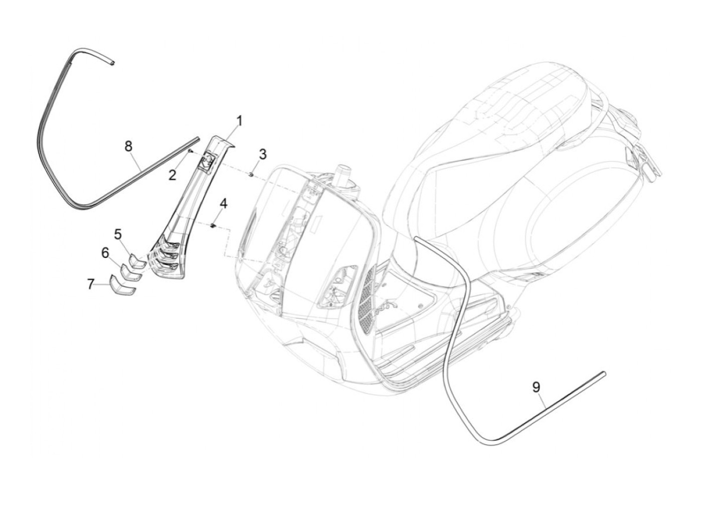 Sisipan kaskade (atas) -PIAGGIO- Vespa GTS125/300 (2019-2022), GTS Super (iGet/HPE), GTS Supersport (iGet/HPE), GTS Touring (iGet/HPE), GTS SuperTech (iGet/HPE), GTS Yacht Club, GTS SuperNotte - Chrome