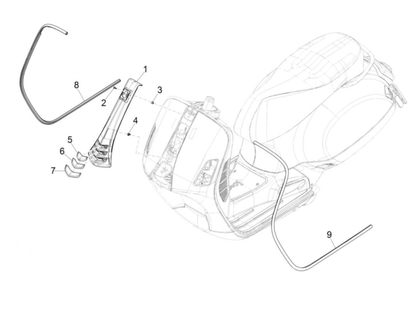 Sisipan kaskade (atas) -PIAGGIO- Vespa GTS125/300 (2019-2022), GTS Super (iGet/HPE), GTS Supersport (iGet/HPE), GTS Touring (iGet/HPE), GTS SuperTech (iGet/HPE), GTS Yacht Club, GTS SuperNotte - Chrome