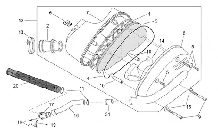 Kotak filter udara -PIAGGIO- Aprilia SR50 (mesin Suzuki, ZD4RLA), SR50 (mesin Piaggio, ZD4TEA, ZD4VFD00), SR50 DiTech (mesin Suzuki, ZD4RLB, ZD4RLE), SR50 DiTech (mesin Piaggio, ZD4RLD, ZD4TE0)