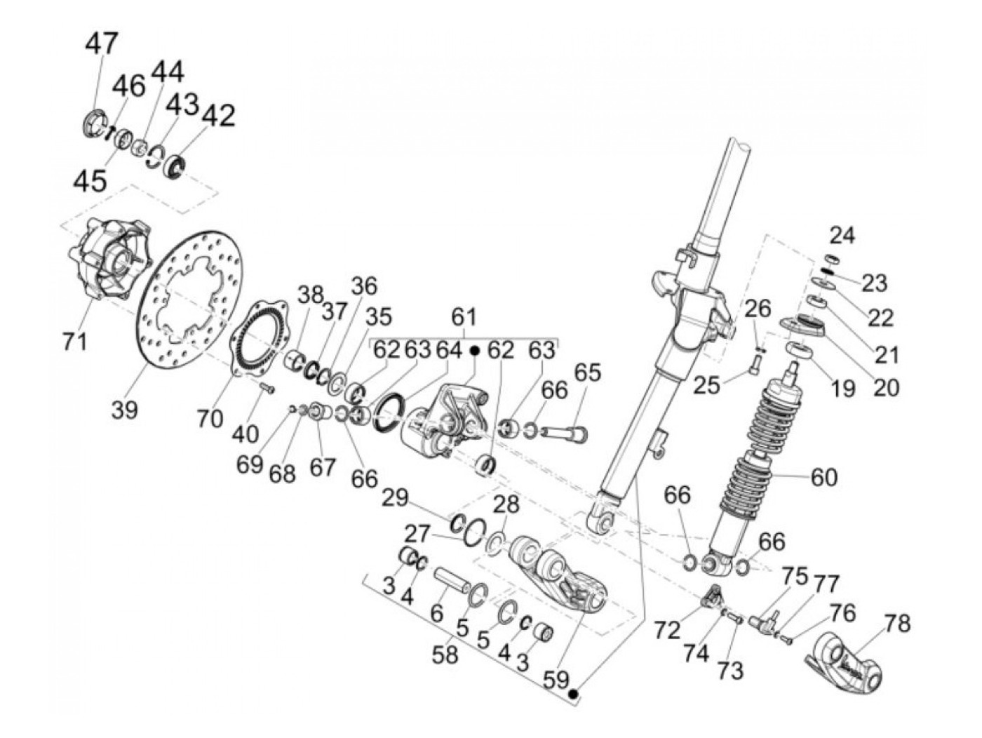 Hub roda depan -PIAGGIO- Vespa GTS 125 (ZAPMA3100, ZAPMA3200, ZAPMA3700), Vespa GTS 150 (ZAPMA3200, ZAPMA3100), Vespa GTS 250 (ZAPM45100), Vespa GTS 300 (ZAPM45200, ZAPM45202, ZAPMA3300), Vespa GTS HPE 300 (ZAPMA3600, ZAPMD310), Vespa GTS Super 125 (ZAPM4