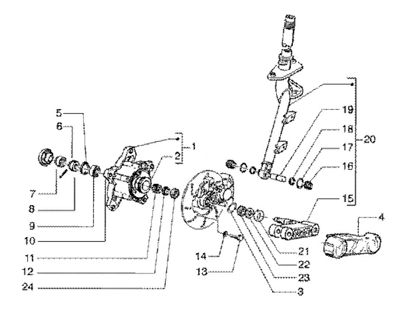 Mur roda depan sangkar pengunci -PIAGGIO- Vespa PX (dari tahun 1984), PK XL, Cosa, ET2, ET4, GT125, GTL, GTS125, GTV, LX, LXV, S, Gilera Fuoco, Piaggio Hexagon, Hexagon GT-GTX, MP3, Kuarsa, Sfera Sfera RST, SKR, Zip SP