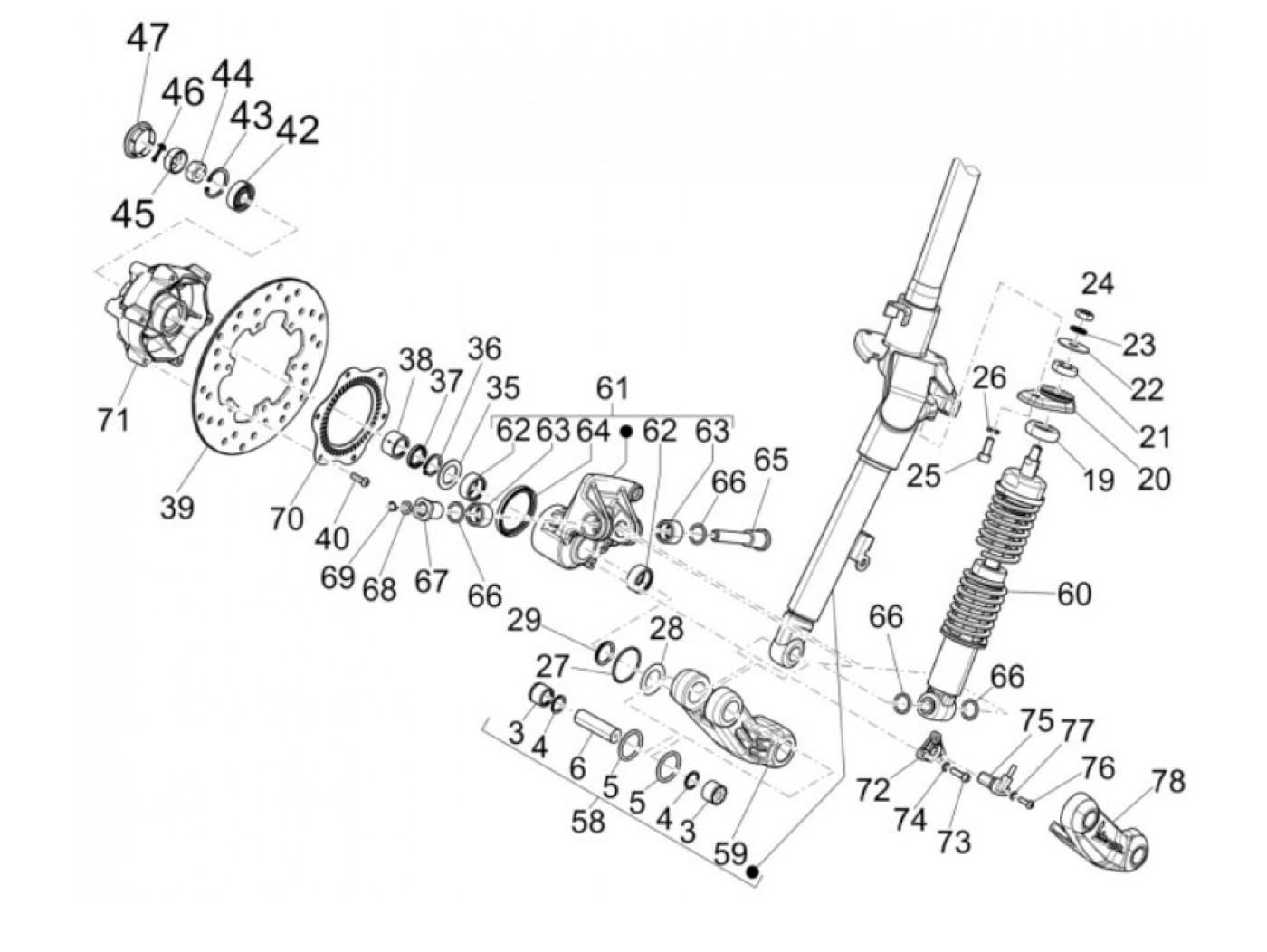 Hub roda depan -PIAGGIO- Vespa GTS 125 (ZAPMA3100, ZAPMA3200, ZAPMA3700), Vespa GTS 150 (ZAPMA3200, ZAPMA3100), Vespa GTS 250 (ZAPM45100), Vespa GTS 300 (ZAPM45200, ZAPM45202, ZAPMA3300), Vespa GTS HPE 300 (ZAPMA3600, ZAPMD310), Vespa GTS Super 125 (ZAPM4