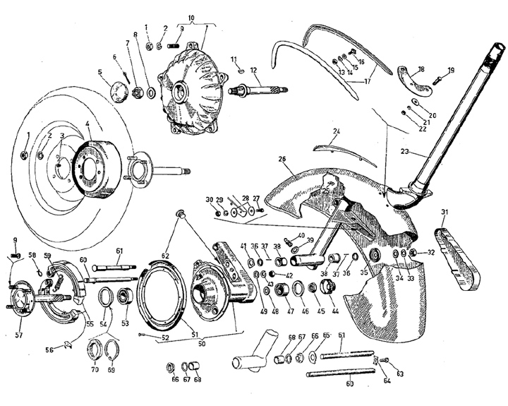 Flensa tromol rem / gandar depan -KUALITAS OEM, baut stud Ø = 8mm- Vespa Rangka Lebar VM, VN, VL, VB, VAA, Rangka Besar VNB1T, VNB2T, VBA1T, VBB1T (-71000)