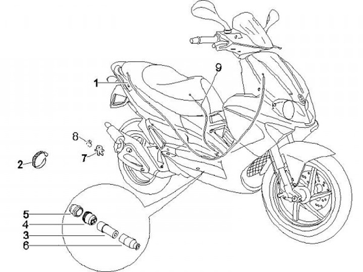 Tutup karet untuk pembagi kabel throttle -PIAGGIO- Vespa LX 50 (ZAPC38101, ZAPC38104, ZAPC38400), Vespa LXV 50 (ZAPC38102), Vespa Primavera 50 (ZAPC53200), Vespa S 50 (ZAPC38103, ZAPC38402), Vespa Sprint 50 (ZAPC53201), Vespa ET2 50 (ZAPC12000, ZAPC16000,