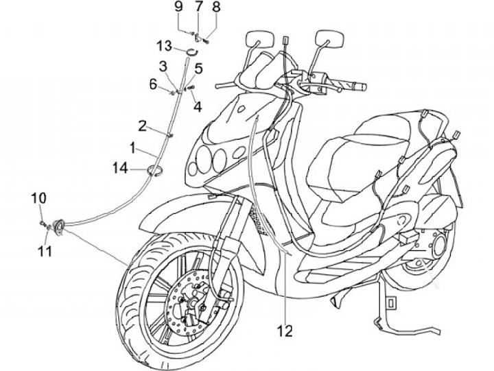 Penjepit untuk saluran rem / kabel rem, Ø = 13mm x 12,3mm -PIAGGIO- Vespa GTS 125 (ZAPM31300), Vespa GTV 125 (ZAPM31301), Vespa LX 125 (ZAPM44100, ZAPM44300, ZAPM68100, ZAPM68300, ZAPM68303), Vespa LX 150 (ZAPM44200, ZAPM44400, ZAPM68400), Vespa LX 50 (ZA