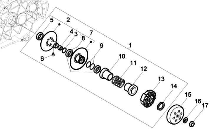 Kopling -PIAGGIO- Vespa ET4 125 (ZAPM19000), Vespa ET4 150 (ZAPM19000), Vespa GT L 125 (ZAPM31100, ZAPM31101), Vespa GTS 125 (ZAPM31300), Vespa GTS Super 125 (ZAPM45300), Vespa GTV 125 (ZAPM31301), Vespa LX 125 (ZAPM44100, ZAPM44300), Vespa LX 150 (ZAPM4