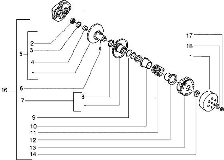 Konverter torsi blok geser -PIAGGIO- Piaggio 50 cm 2-tak (kecuali Sfera (NSL1T) dan Zip (SSL1T)), Piaggio 50-100 ccm 4-tak