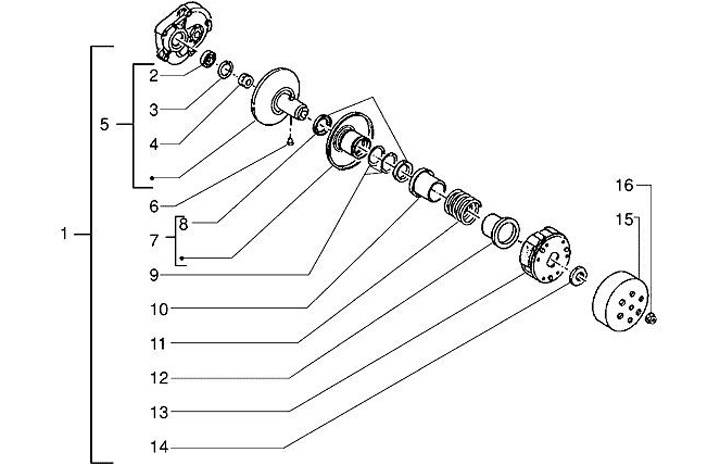 Konverter torsi blok geser -PIAGGIO- Piaggio 50 cm 2-tak (kecuali Sfera (NSL1T) dan Zip (SSL1T)), Piaggio 50-100 ccm 4-tak
