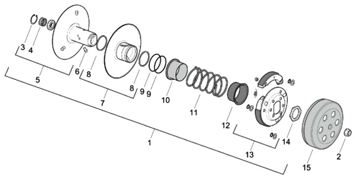 Kopling -PIAGGIO- Vespa Primavera 50 (ZAPC53200), Vespa Sprint 50 (ZAPC53201, ZAPC53301, ZAPC53303), Gilera DNA 50 (ZAPC27000), Gilera Runner 50 (ZAPC14000, ZAPC36100, ZAPC36200, ZAPC36400, ZAPC46100, ZAPC46200, ZAPC46300), Gilera Storm 50 (ZAPC29000), P
