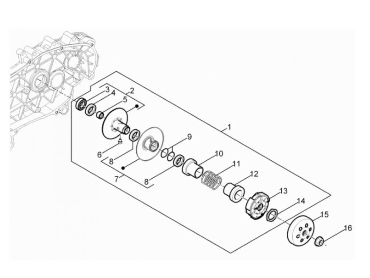 Konverter torsi blok geser -PIAGGIO- Piaggio 50 cm 2-tak (kecuali Sfera (NSL1T) dan Zip (SSL1T)), Piaggio 50-100 ccm 4-tak