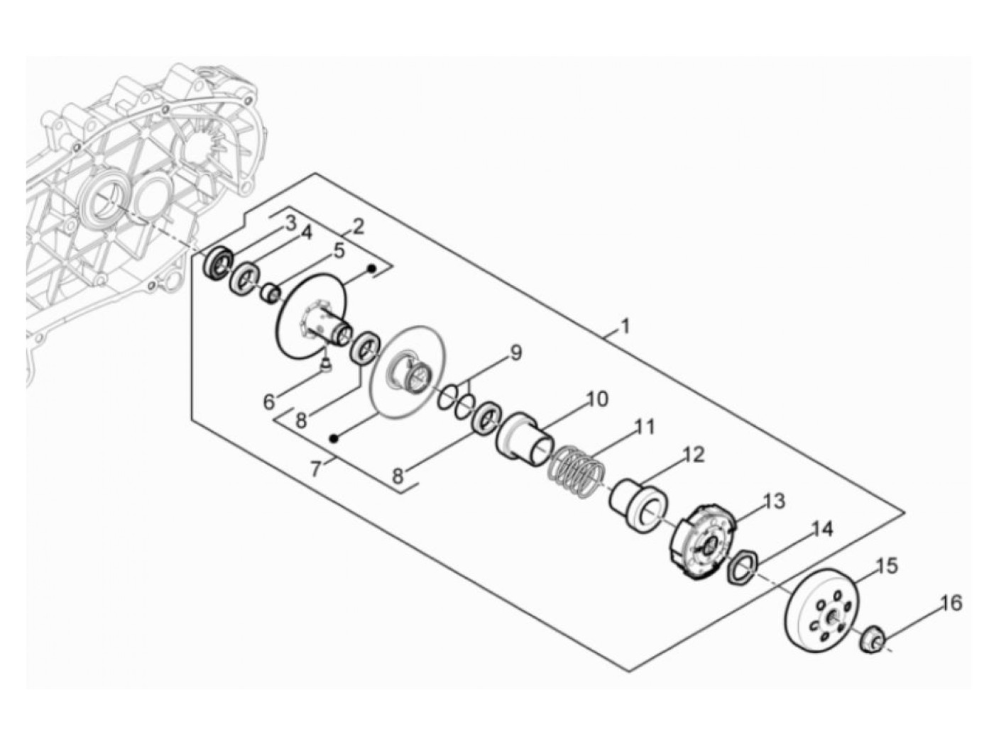Konverter torsi blok geser -PIAGGIO- Piaggio 50 cm 2-tak (kecuali Sfera (NSL1T) dan Zip (SSL1T)), Piaggio 50-100 ccm 4-tak