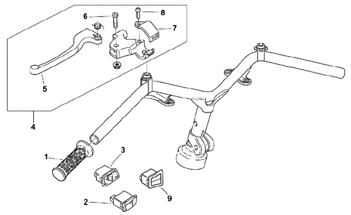 Tuas rem (tromol belakang) -APRILIA- Amico (075, ZD4MK), Gulliver (ZD4LH02, ZD4LHA), Mojito (ZD4PKC0), Rally (ZD4MD0, ZD4MDB, ZD4TM), Sonic (ZD4PBB0, ZD4PBB1), SR (078, ZD4LC, ZD4LY, ZD4MZ, ZD4PX)