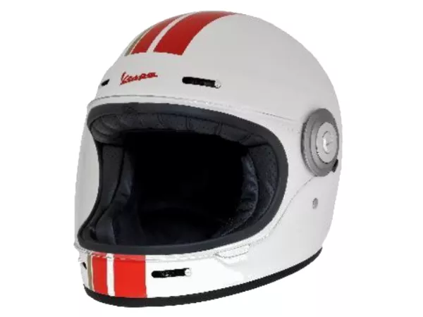 Setelah helm jet, kini ada juga helm full-face Racing Sixties 60-an sebagai edisi khusus yang sesuai dengan Vespa! Grafis dua warna pada model khusus ini sesuai dengan desain Vespa Racing 60-an.