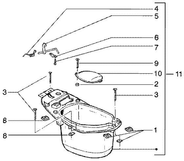 Panduan kunci kursi -PIAGGIO- Vespa LX 50-150, LXV 50-125, S 50-150, VX 150, VXL 125-150, Piaggio Beverly 125-250, Fly 50-150, Liberty 50-200, TPH 50-125, Aprilia Sport City 50-125