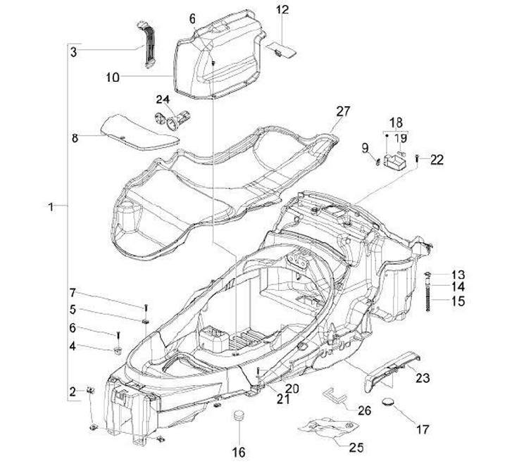 Tool kit -PIAGGIO- Gilera Fuoco 500 (ZAPM61100, ZAPM83100), Piaggio MP3 400 (ZAPM59102, ZAPM64200, ZAPM5910), Piaggio MP3 500 (ZAPM59200, ZAPM64300, ZAPM86100, ZAPM86101, ZAPTA1202, ZAPTA1204)