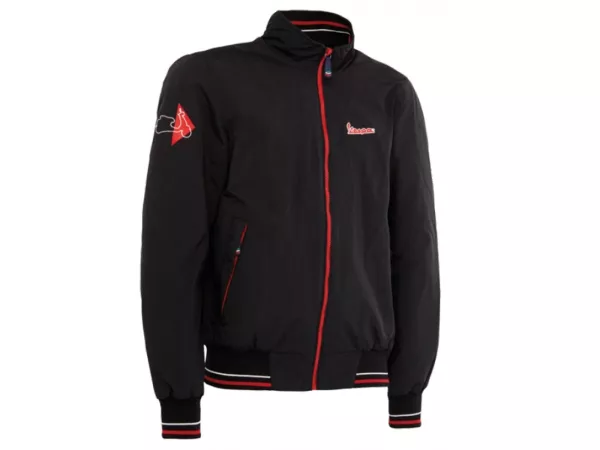 Jaket yang terbuat dari kain nilon dengan lapisan anti air. Tambalan reflektif pada kerah. Pelindung bahu dan siku yang dapat dilepas dan bersertifikat EN 1621-1. Kompartemen untuk pelindung punggung, tidak termasuk pelindung. Lapisan dalam yang kokoh, manset pergelangan tangan rajutan dengan lubang ibu jari. Tambalan dengan logo Vespa® dan profil Vespa Primavera berwarna merah, ritsleting silikon "Tricolour". Bersertifikat EN17092.