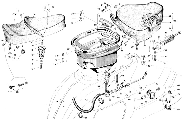 Pegas bangku kursi -PIAGGIO- Vespa PV 125, V50, ET3, PK, PK S, PK S Lusso, PX, Rally, Sprint, TS