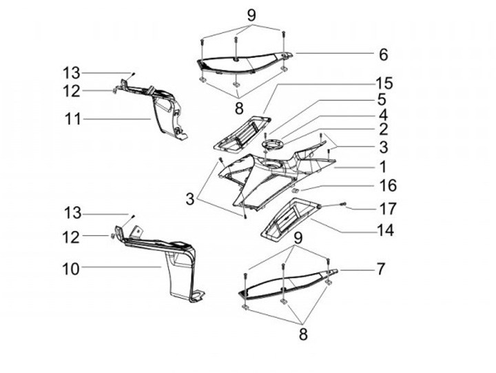 Pelindung kaki bagian dalam panel depan kanan bawah -GILERA- Runner (dari tahun 2006) (ZAPC461, ZAPC462, ZAPM461, ZAPM462, ZAPM463, ZAPM464) - hitam